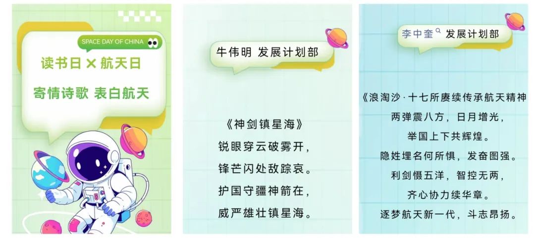 四院17所開展“讀書日X航天日 寄情詩歌 表白航天”活動(dòng),向各部門征集航天主題的詩詞,作品韻律優(yōu)美,展現(xiàn)了航天人的豪情壯志,抒發(fā)了對(duì)航天事業(yè)的無限熱愛。