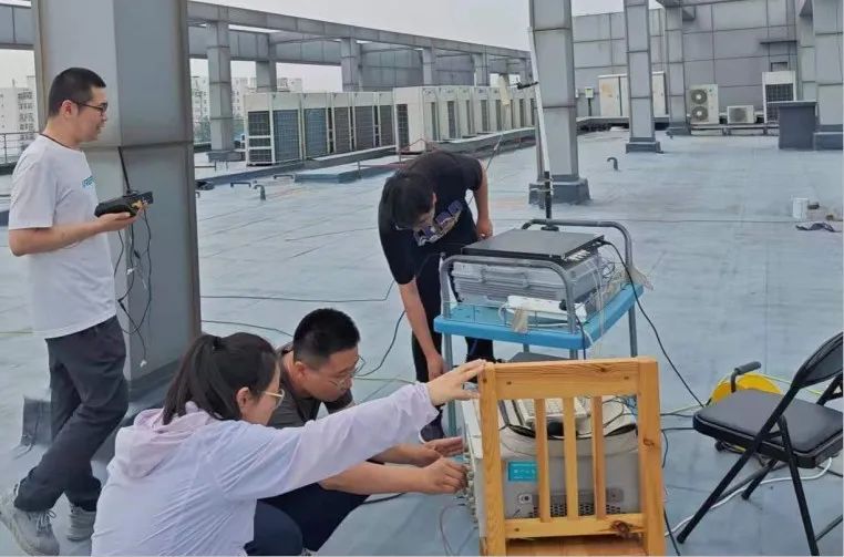 坐標(biāo)58號(hào)樓樓頂,北京這些日子時(shí)而艷陽(yáng)高照,時(shí)而潮濕悶熱,樓頂上更是熱氣騰騰,設(shè)備摸上去都燙手。但為了保障項(xiàng)目產(chǎn)品順利交付,5G通信導(dǎo)航事業(yè)部的技術(shù)人員正抓緊進(jìn)行著產(chǎn)品測(cè)試工作,他們幾乎每天在樓頂上一呆就是幾個(gè)小時(shí),任憑身上的衣服濕了又干,干了又濕,沒有一絲退縮。