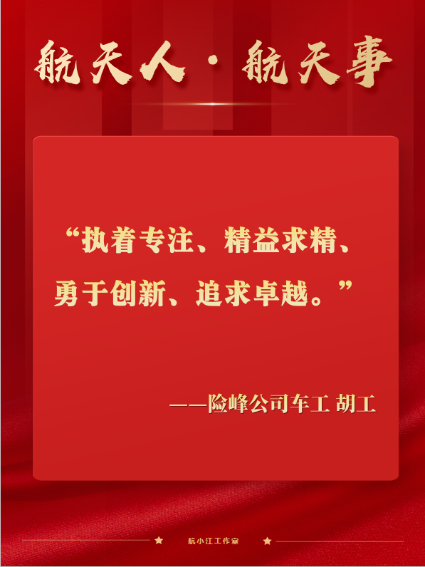 上世紀90年代剛進廠時,師父的言傳身教,讓胡工深刻理解了什么是航天人的底色。有一次,師父為了完美交付一飛試產品的重要零件,他和同事們吃住都在車間,沉浸于琢磨加工方法,三天三夜里休息時間加起來不足10小時。師父的鉆勁兒和拼勁兒,深深影響了胡工。他暗下決心:要當個好工人,不僅要有技術,更要有擔當。”