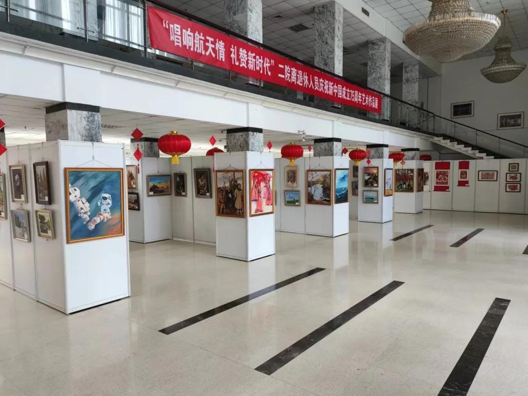 當日,二院離退休職工慶祝新中國成立75周年藝術作品展在職工文化中心開幕,此次展覽共展出各類作品近700幅。演出之后,領導和來賓參觀了展覽。
