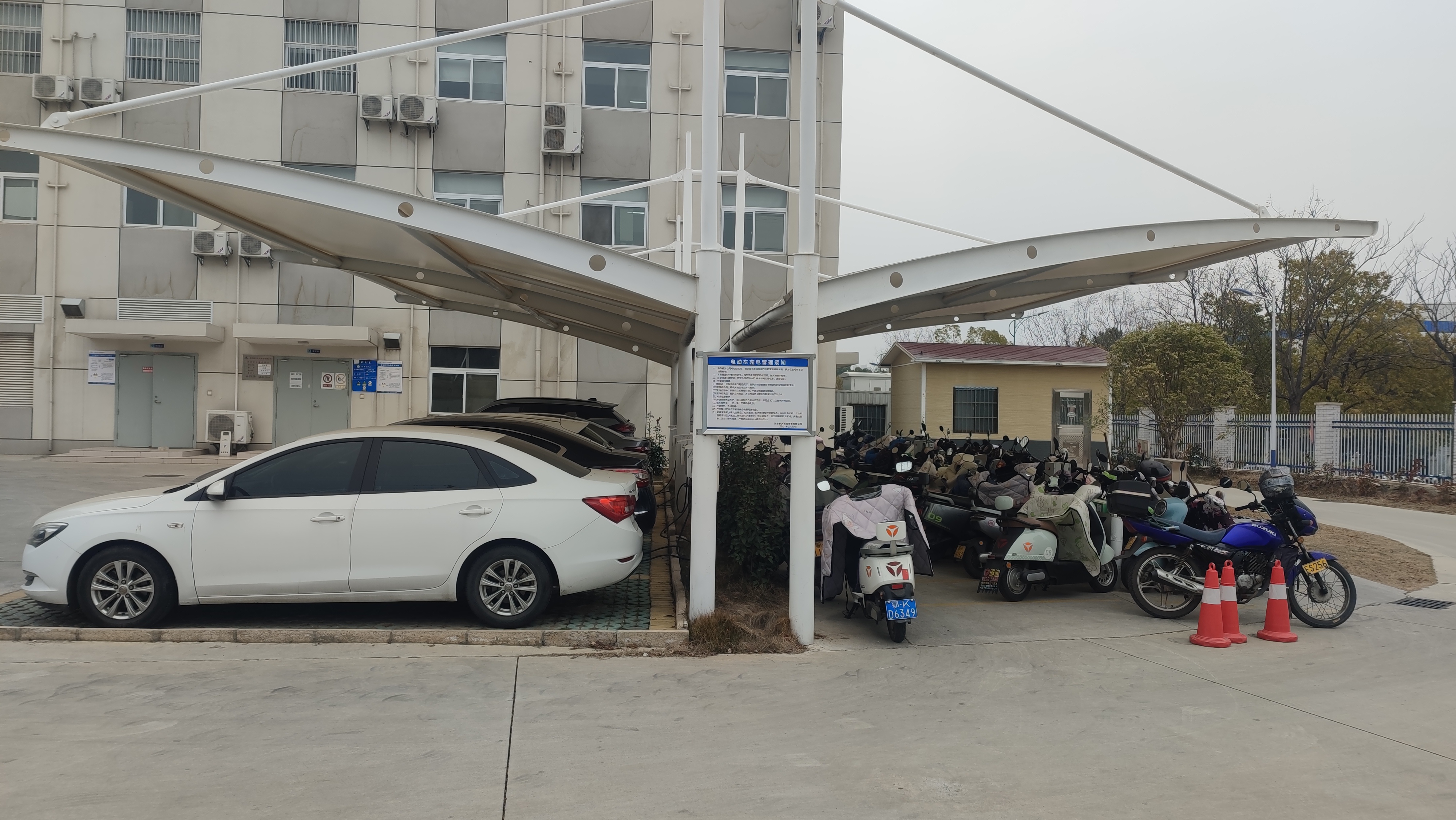 午休時(shí)間的車(chē)棚格外熱鬧,正在使用快充樁的廠區(qū)員工算著經(jīng)濟(jì)賬:“光伏電價(jià)每度比市價(jià)低0.15元,充滿(mǎn)我的電動(dòng)車(chē)能省9塊錢(qián),半年省下的充電費(fèi)都?jí)蛸I(mǎi)車(chē)載凈化器了。”而在半年前,這里還是讓員工頭疼的“曬車(chē)場(chǎng)”——50余輛車(chē)爭(zhēng)搶20個(gè)露天車(chē)位,夏季車(chē)內(nèi)溫度動(dòng)輒突破50℃。如今不僅停車(chē)位翻倍,車(chē)位棚頂還能大幅降低地面溫度。該光伏+車(chē)棚項(xiàng)目作為為職工辦實(shí)事典型案例受到職工和上級(jí)單位廣泛贊譽(yù)。